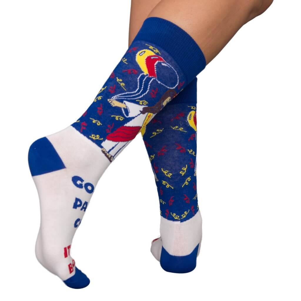 Bless the birthday boy this Christmas and show everyone just how much organized religion means to you when you prove yourself to be the ultimate blasphemer the holy spirit this holiday season. Christmas used to be about Jesus and in the last 50 years it become about presents, which is exactly what it should be about! It's about giving gifts to your loved ones and them getting you something totally crappy in return. So, why not be the good husband or the good wife, the good brother or the sister and get your loved ones one of the funniest pairs of socks ever manufactured in China. These Jesus Birthday Boy ugly Christmas socks will not disappoint the ardent disapprover of Jesus or the ardent admirer of the Holy Father. Praise Jesus and praise Christmas - keep your feet warm so you don't get as tipsy as one of Santa's elves on a cold night at the North Pole!